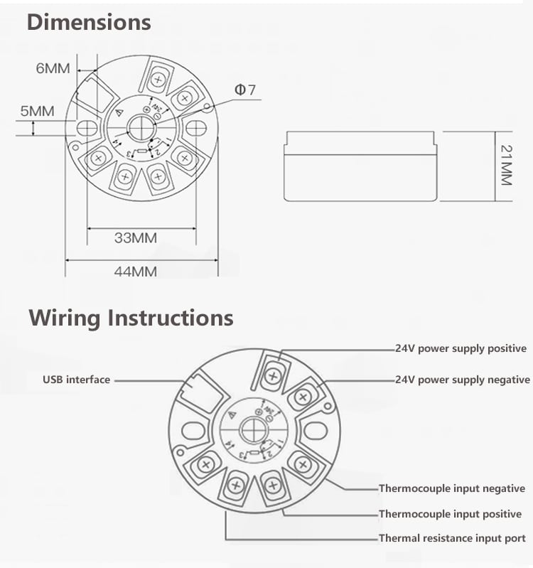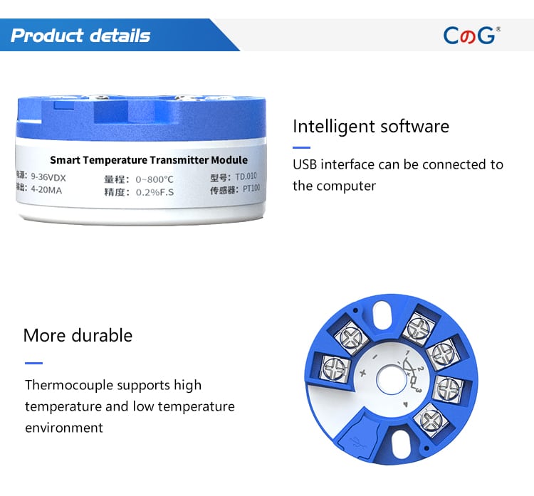 Programmable Thermocouple K J PT100 to 4-20mA Converter TC RTD Input 4-20mA Output Head-mounted Temperature Transmitter With USB