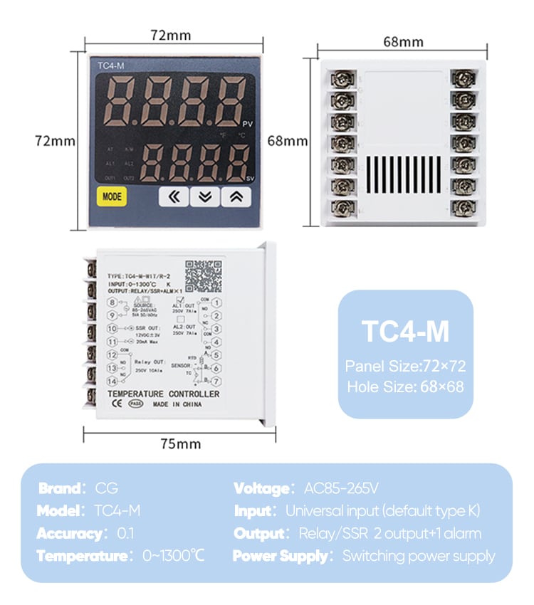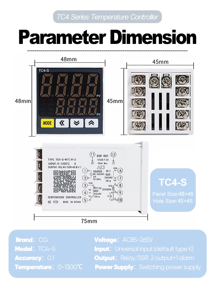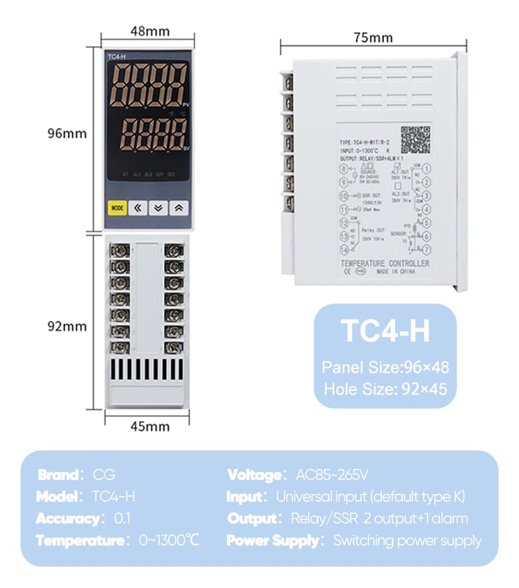 CG TC4 Series Intelligent Digital Display Temperature Controller Universal Input Double Output AC85-265V PID Control Thermostat