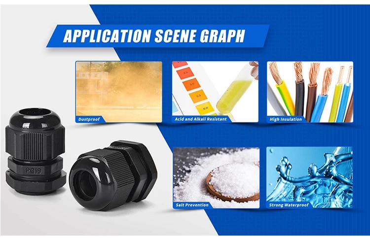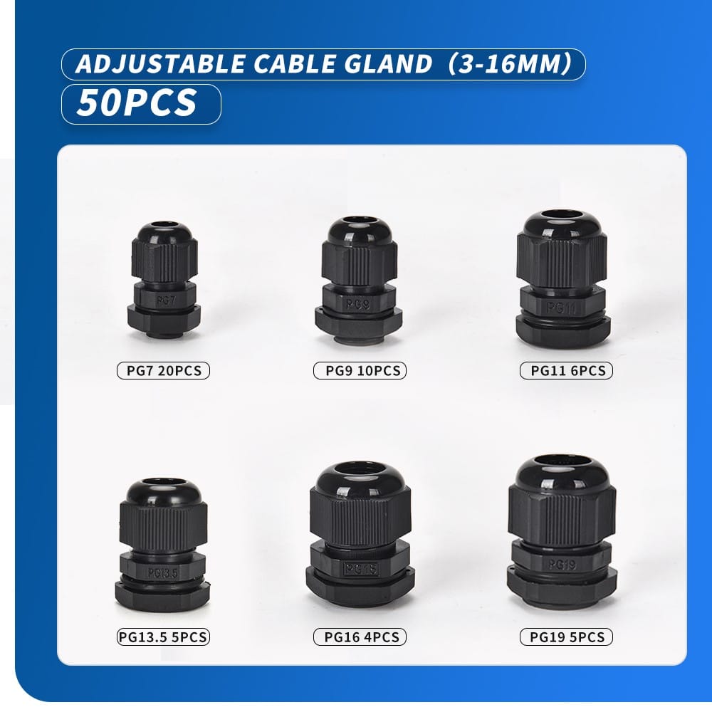 CG 50PCS Waterproof Cable Gland PG7 PG9 PG11 PG13.5 PG16 PG19 Plastic Black Cable Fixing Joint With Gasket Range For 3-15mm Set